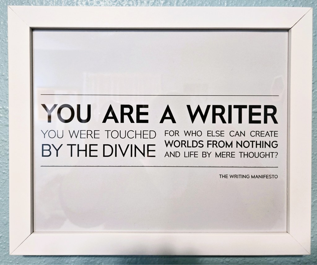 Writing can be daunting, and impostor syndrome likes to rear its ugly head with startling frequency, so I keep this reminder in my office where I can see it at all times.